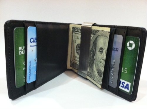 | 2 of 2 people found the following review helpful: By Amazon Verified Purchase This review is from: Black/Black Leather Bi-Fold Money Clip Wallet by DesignSK (Apparel) This is a very attractive, simple, slim money clip/wallet. I use it for my debit card, drivers license, and money. You could probably fit a couple more cards in there if you had to. It takes up much less space in my pocket, and I feel cool every time I pull it out. :-) As for other stuff like membership cards, business cards, insurance cards, etc., I keep them in a small container in my car (which tends to follow me around anyway). 4 of 5 people found the following review helpful: By William W Naman (Austin, TX United States) - See all my reviews Amazon Verified Purchase This review is from: Black/Black Leather Bi-Fold Money Clip Wallet by DesignSK (Apparel) If you look at the pictures carefully, you will see this is a loose metal clip over a wallet. The way the wallet is stitched, there should be a pocket for one side of the clip but it is stitched closed. This is very rigid and tight and won't hold many cards, especially cards in protective non slip covers.This is a product that would only be useful to someone with 2 cards and very little cash. It really can't hold much securely and is too stiff. It is so narrow that only perfectly aligned bills would be hidden in the clip. Buy something else. 1 of 1 people found the following review helpful: By This review is from: Black/Black Leather Bi-Fold Money Clip Wallet by DesignSK (Apparel) I have been very happy with this wallet design. I currently fit 6 cards (2 x Visa, 2 x ID, Insurance, AAA) in the sleeves and mount the money clip close to the fold with bills on the inside. This is the slimmest option that I have found that will hold this many items. I prefer not to mount anything on the outside. Build quality has been fantastic - stitching is very well done. Fantastic value for the price.I have recently ordered another in another color. |